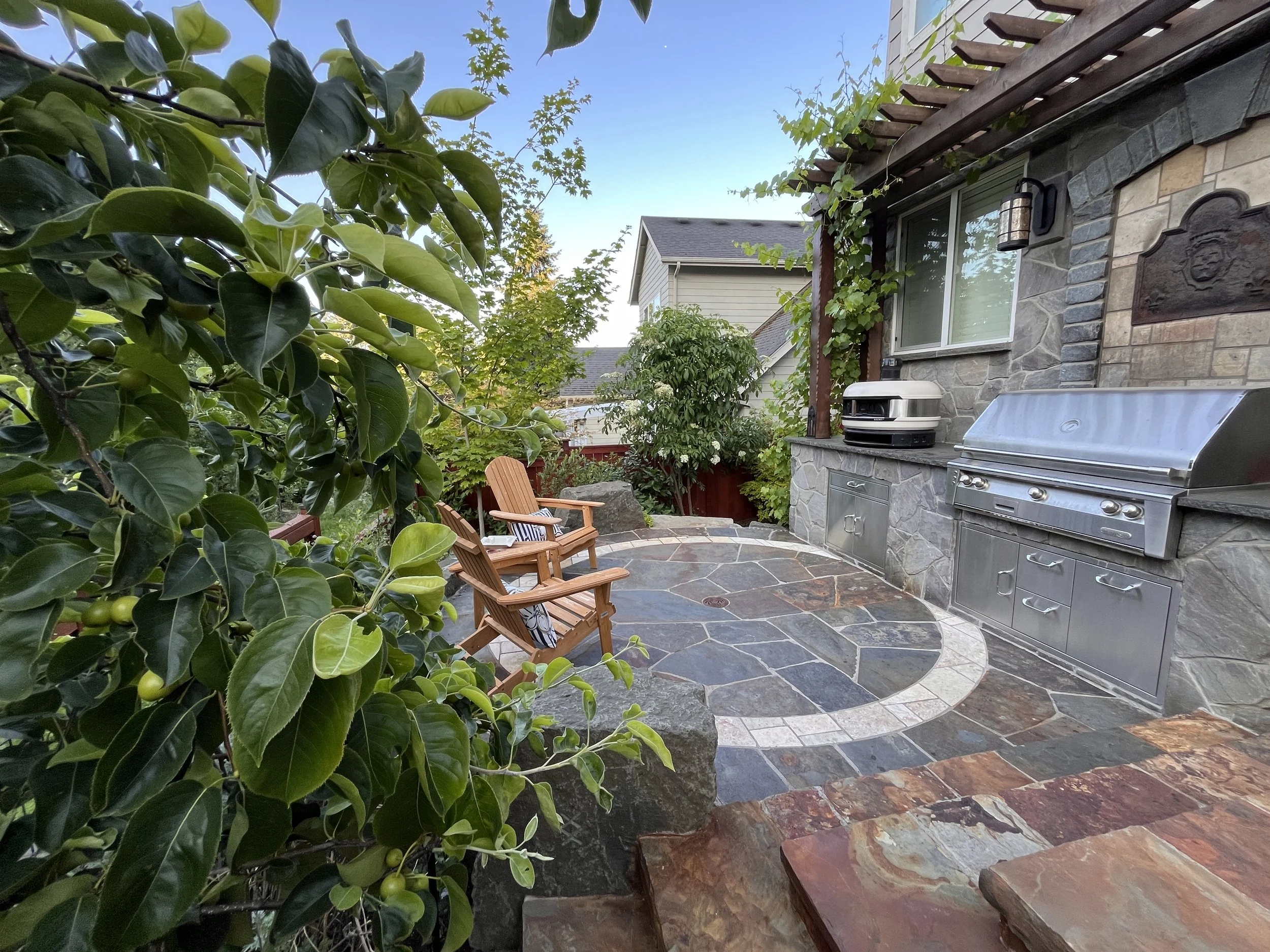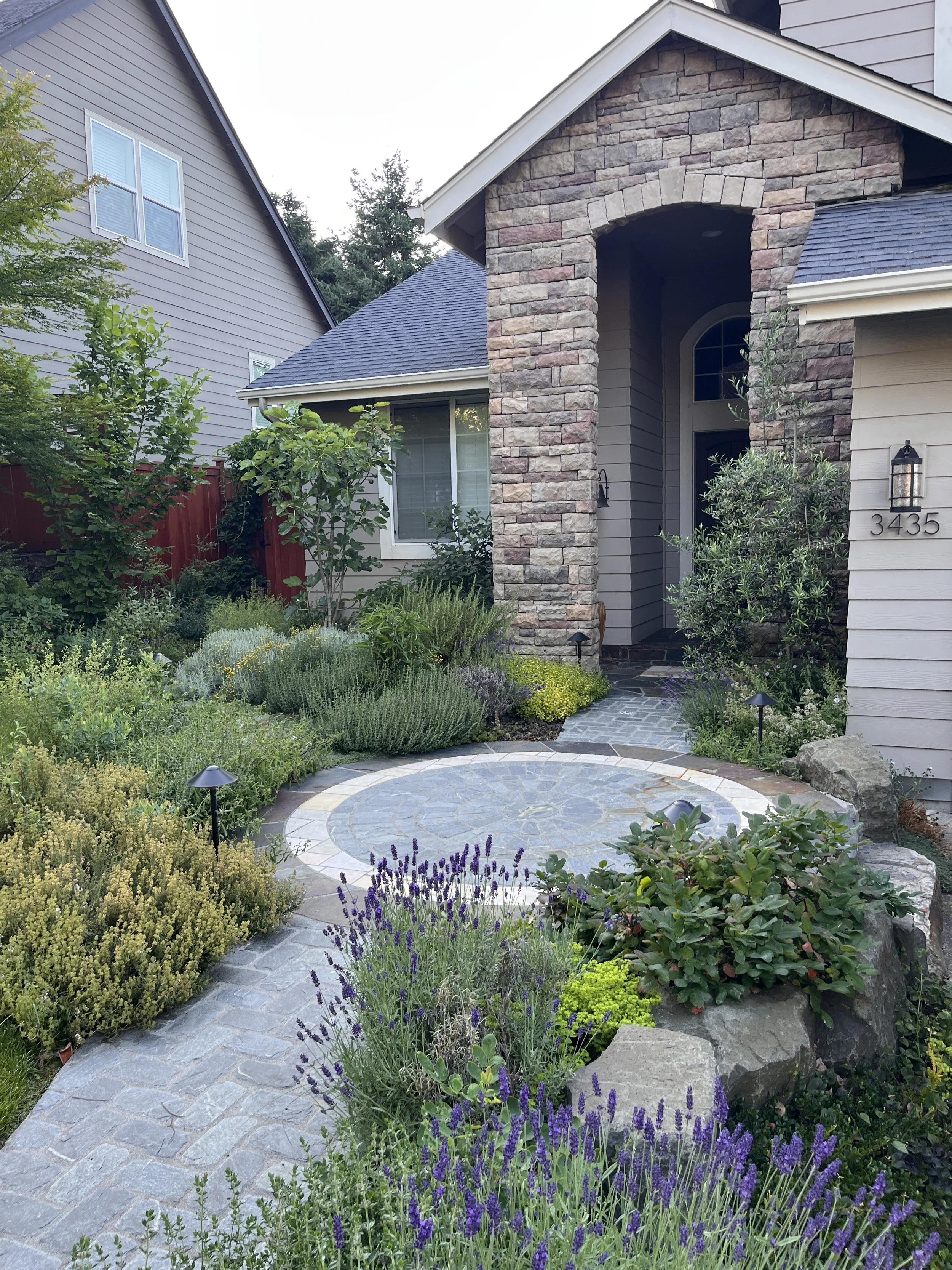 Stirred by the client’s fondness for Lord of the Rings, we transformed an otherwise non-descript suburban yard into a splendid display of wood, stone, metal, and 100 (edible, drinkable, medicine making) plants. Celebrating the client’s love of food we created abundant opportunities for gleaning and foraging, outdoor rooms for gathering around the outdoor kitchen, and sharing food with friends. The love of food doesn’t stop at humans; pollinator plants are placed throughout the design, recognizing the important role of creatures that are an integral part of our food system.